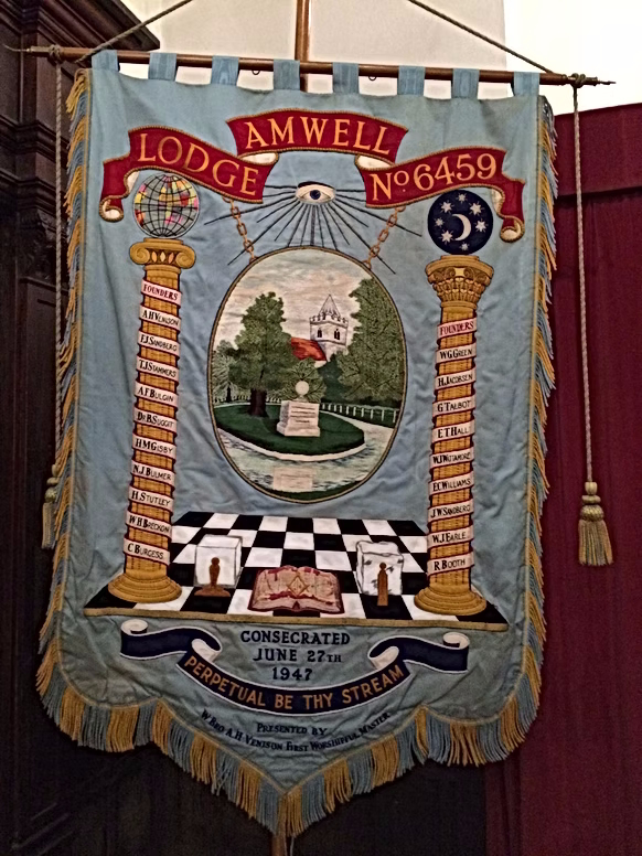 More than seventy-five years after its consecration, Amwell Lodge No. 6459 stands as a proud part of Hertfordshire’s Masonic heritage — a Lodge perpetual by its stream, nourished by the same enduring flow of friendship, service, and integrity that first inspired its founders.